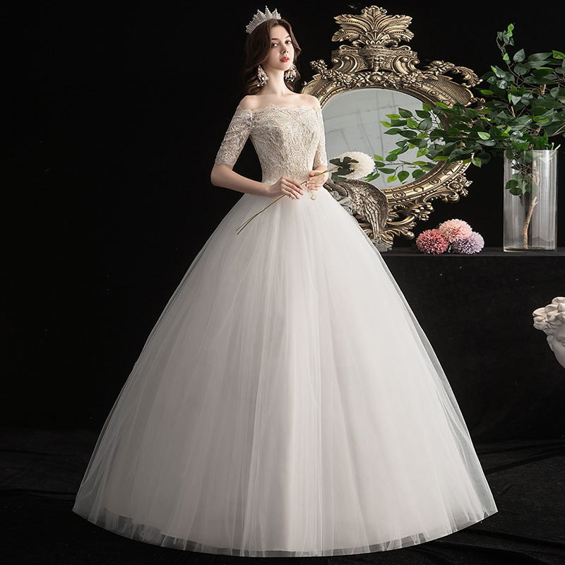 2024 new style champagne white main wedding dress, lace sleeves, slimming bridal wear for summer and autumn.