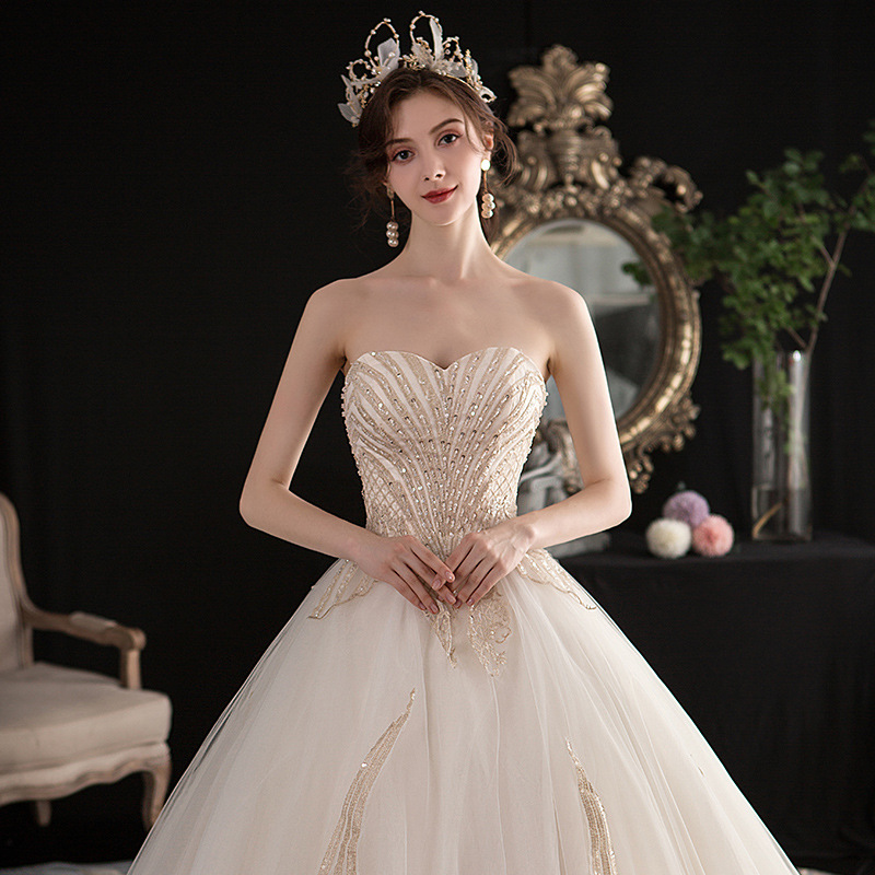 2024 new white tube top lace simple fairy style bridal tail wedding dress.