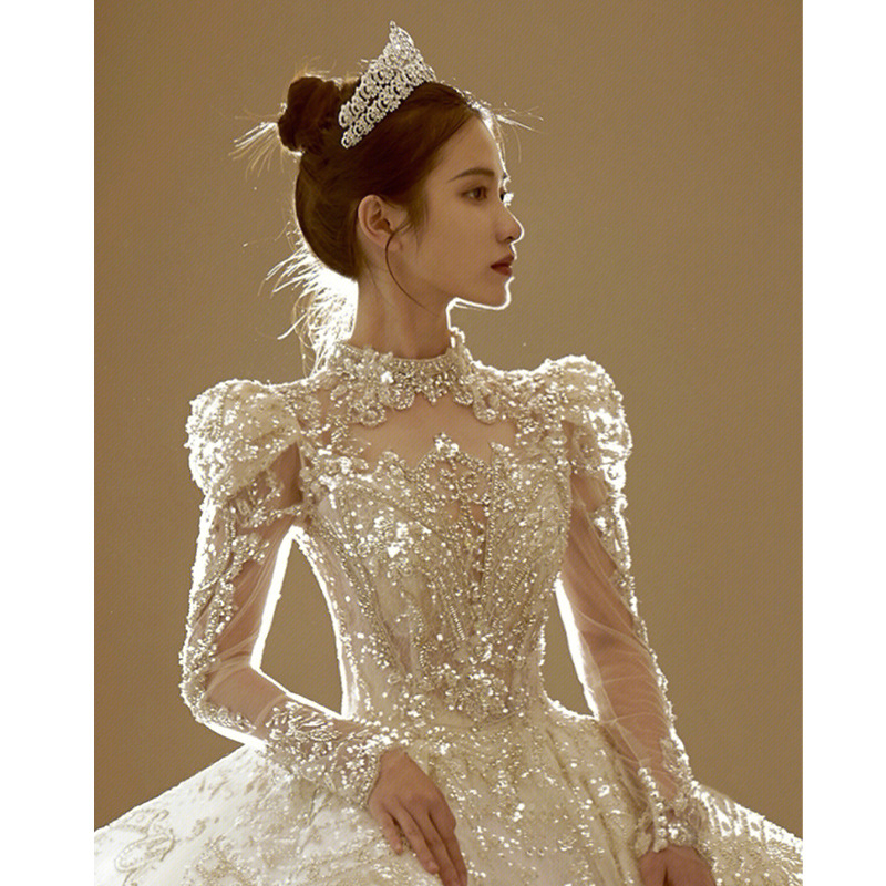 2024 new long-sleeved wedding dress, French retro light luxury style, niche high-end large tail.